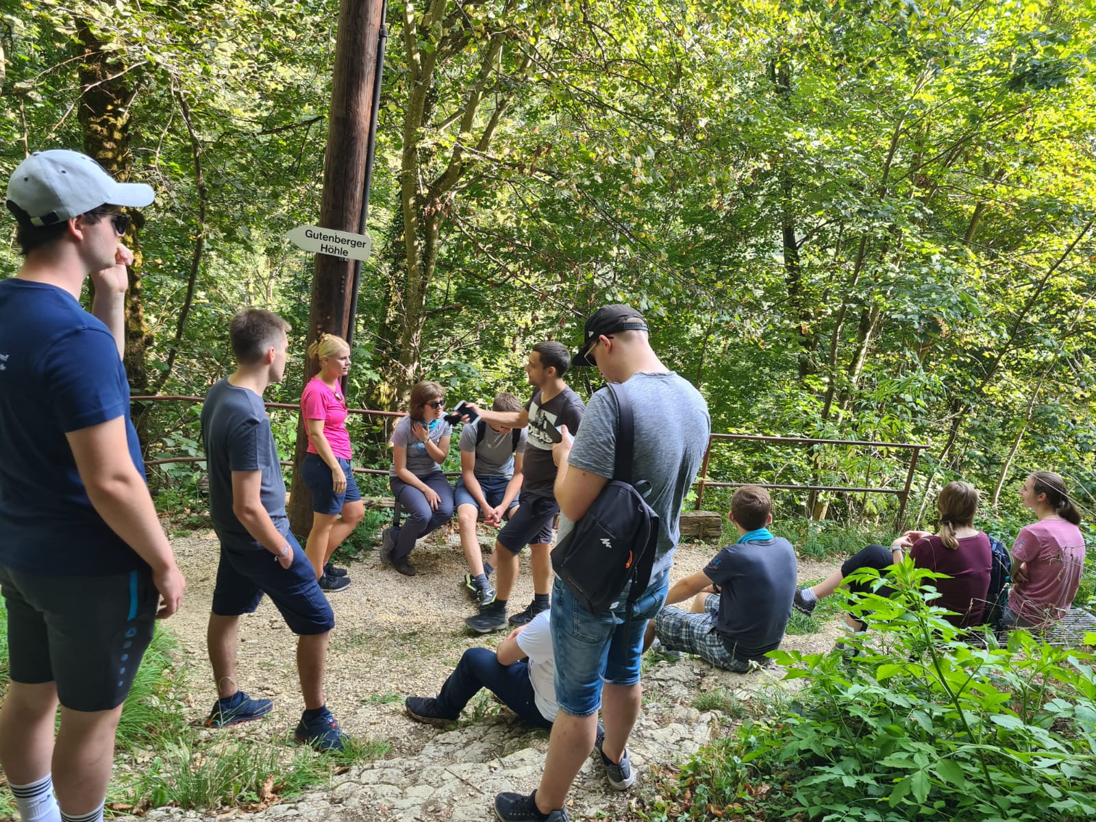 Hoch hinaus ging es dieses Jahr beim Mitarbeiterwochenende der Jugendarbeit Albtrauf in Gutenberg gleich in mehrfacher Hinsicht. Beim Spieleabend am Freitag ging es um den Höchstbietenden für die Wetten. Am Samstagmorgen stellte uns Lennard Freise (Jugendreferent vom Bezirksjugendwerk) vor die schwierige Aufgabe, drei exakt gleiche Türme mit erschwerter Kommunikation auf einer schwimmenden Frisbee zu errichten. Und am Nachmittag ging es zu Fuß hoch hinauf nach Krebsstein zum Wasserfels.